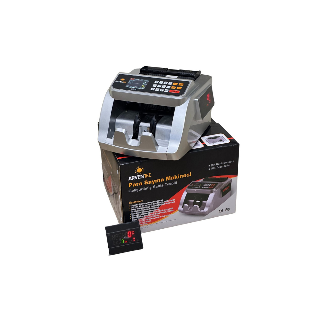 Arventec GT200 Tl / Euro Kağıt Para Sayma Makinesi, bankalar, finans kurumları ve işletmelerin nakit işlemlerini hızlandırmak ve kolaylaştırmak için tasarlanmış bir üstün teknoloji ürünüdür. Bu özel para sayma makinesi, Türk Lirası ve Euro gibi para birimlerini hızlı ve doğru bir şekilde saymak için tasarlanmıştır.