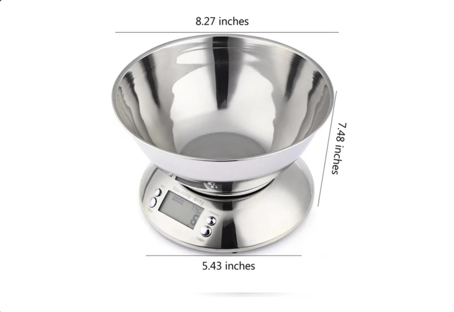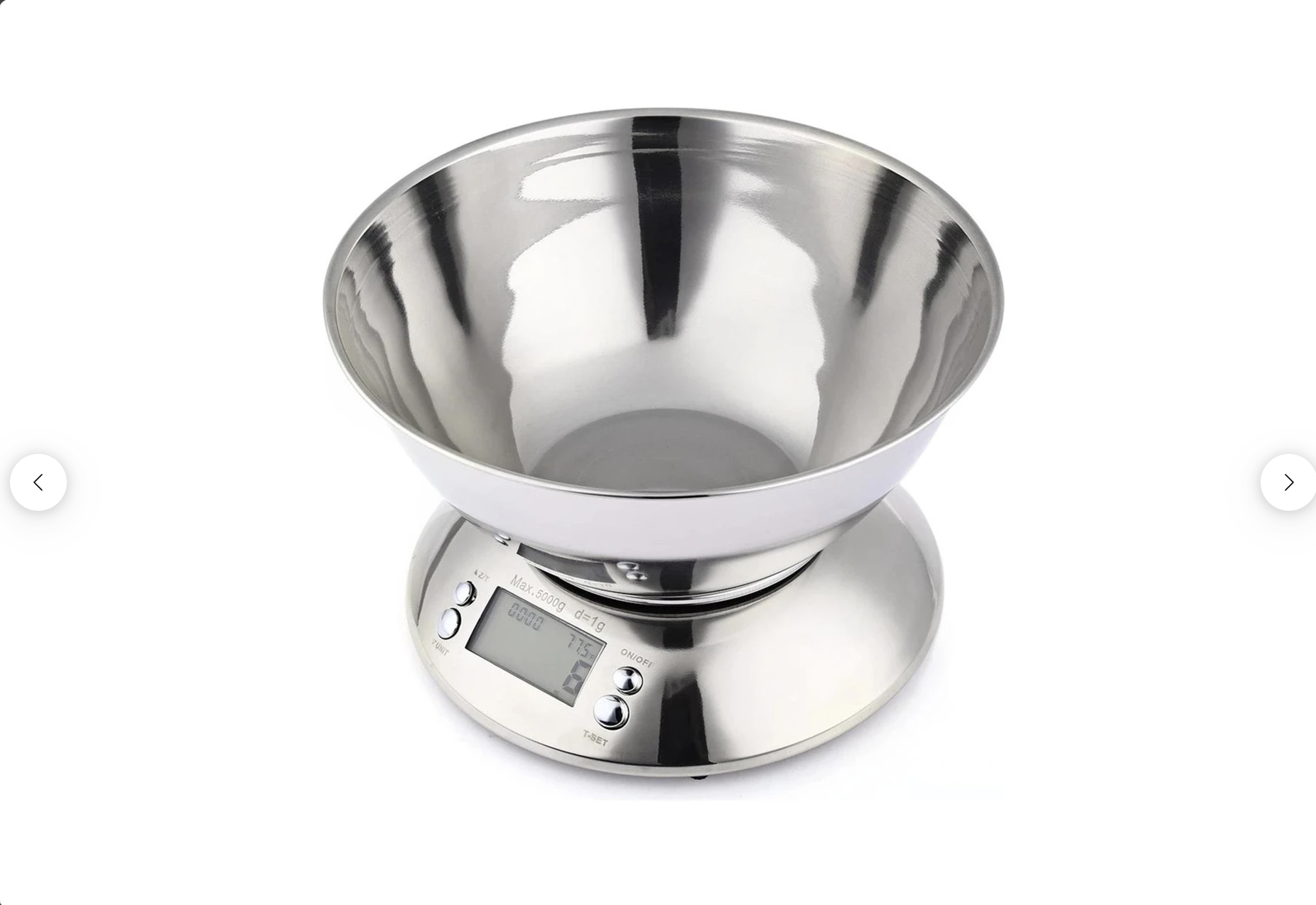 1. maksimum kapasite: 5 kg 2. hassasiyet : 1g 3. konteyner hacmi: 1700 ml 4. ölçek boyutu: 190mm * 190mm * 50mm 5. ölçek ağırlığı: 387g 6. malzeme: 201 paslanmaz çelik + ABS plastik 7. LCD boyutu: 47*24mm 8. LCD tipi: beyaz aydınlatmalı 9. güç kaynağı: 2 adet AAA pil 10. birim: g/kg, oz/lb 11. Renk: gümüş 12. Platform boyutu: 117*117mm 13. otomatik kapanma: 2 dak 14. Çalışma sıcaklığı: Optimum 10-40 ° c (50-104 ° f) 15. Dara aralığı: ölçeğin maksimum kapasitesine kadar 16. Ambalaj boyutu: 215*215*105mm 17. ambalaj ağırlığı: 721g (pilsiz) 734g (pil ile) Fonksiyon 1. otomatik açma/kapama 2. otomatik kilit ağırlığı 3. düşük pil göstergesi, aşırı yük koruması 4. dara/sıfırlama işlevi 5. zamanlayıcı fonksiyonu, ölçü sıcaklık fonksiyonu
